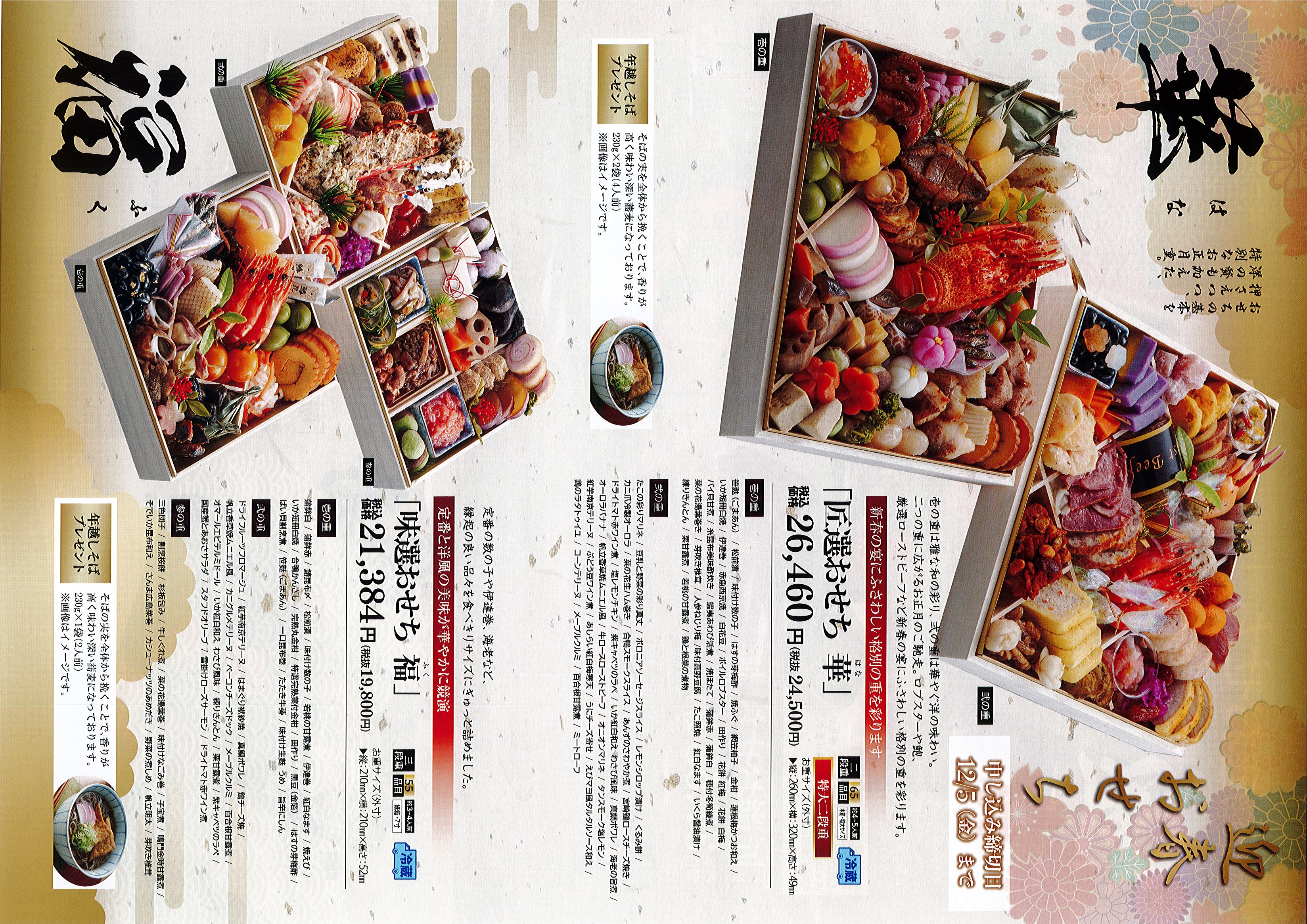 今年も「豪華な盛り合わせの中に長寿の願いをこめて祝いの席に親しみのある味と楽しさ」を詰め込んだおせちとなっております。